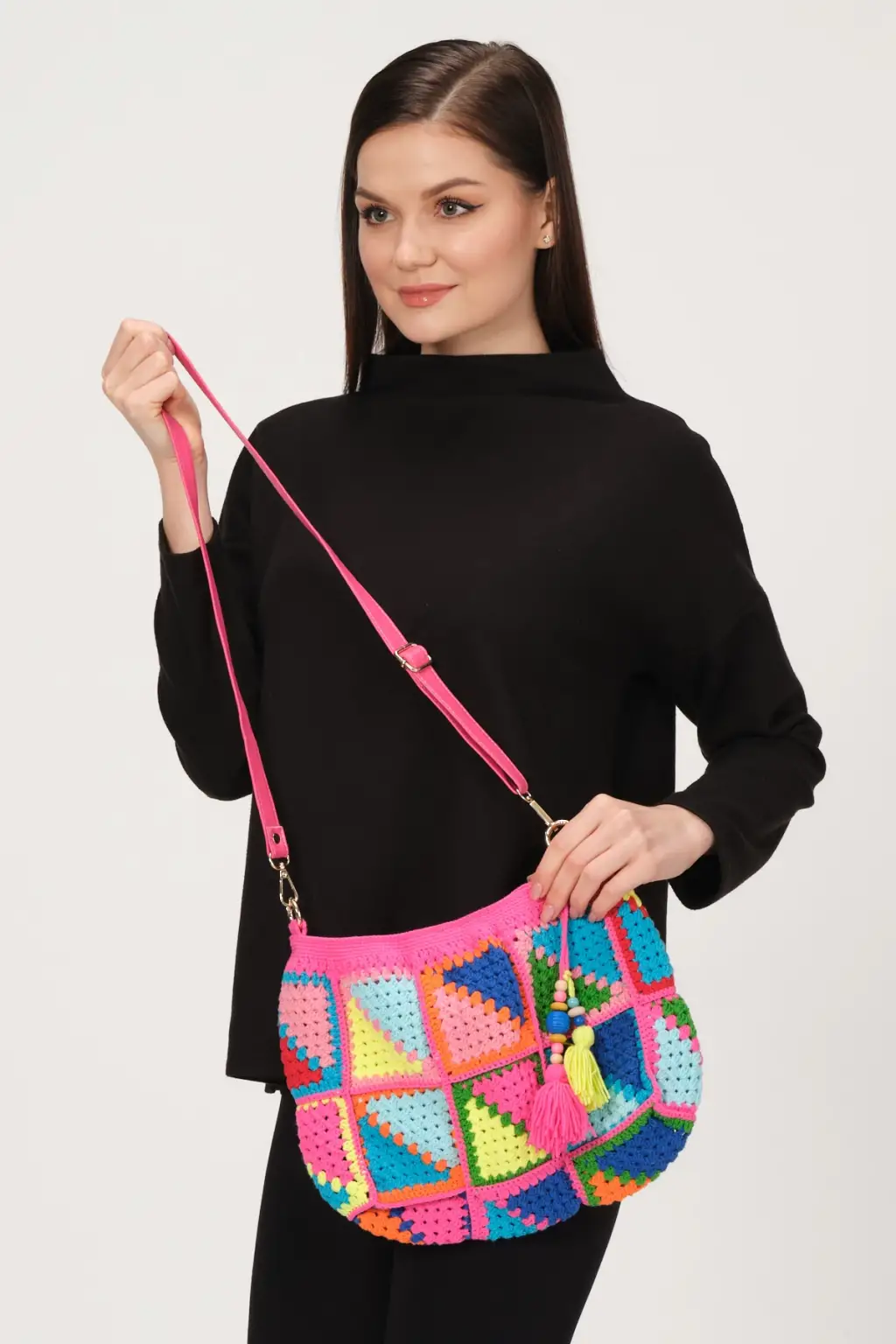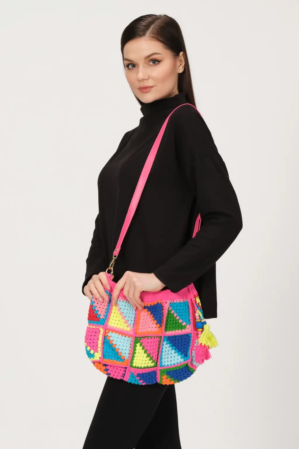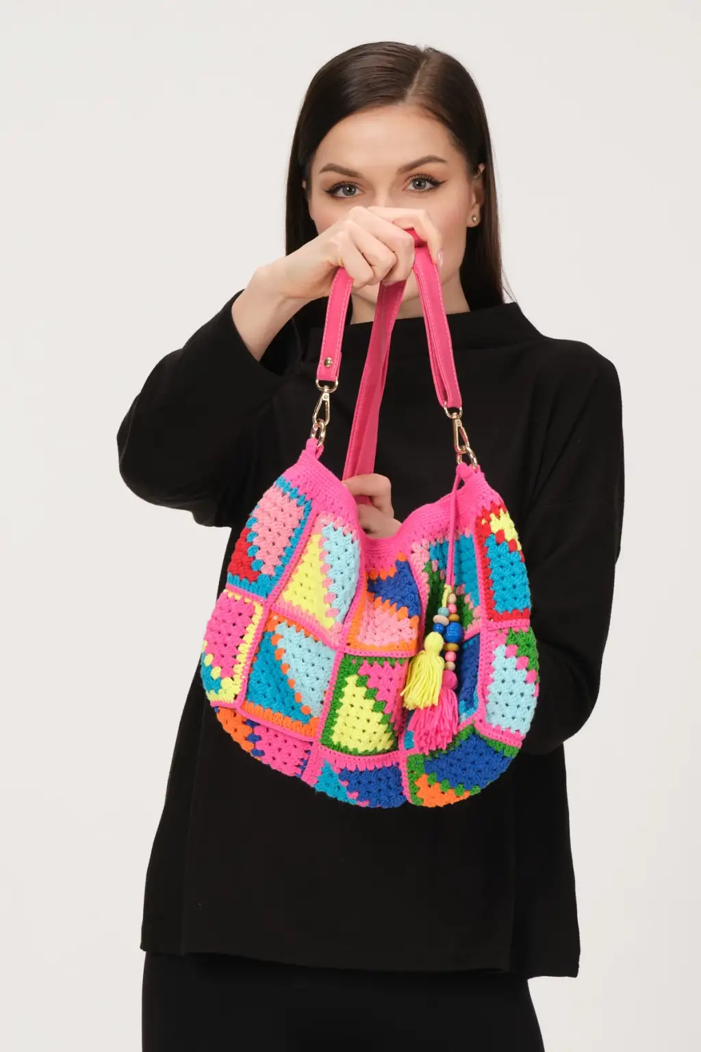 El Örgüsü Tığ işi Çanta ölçüsü Uzunluk 45 cm, Genişlik 30 cm,%55 Pamuk, %45 Akrilik İpliklerden, El Yapımı Tığ İşinden, İçi Astarlı Örgü Çanta,