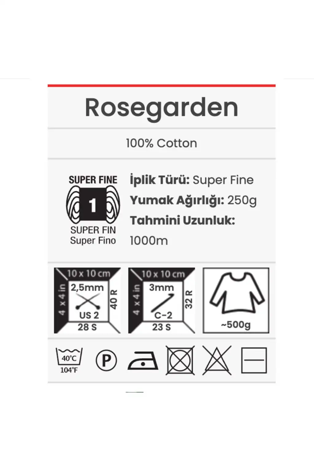 Yarnart Rosegarden 310 YarnArt’ın yepyeni serisi Rosegarden %100 pamuk içeriği ve birbiriyle uyumlu renk geçişleriyle yazlık örgülerinizin vazgeçilmezi olacak. ; Yumuşak dokusu sayesinde bluz, elbise, şal, etek gibi tüm kıyafet ve aksesuar örgülerinizde tercih edebileceğiniz Rosegarden serisini doğal içeriği nedeniyle bebek ürünlerinde de güvenle kullanabilirsiniz. ; 1000 metrelik kek ip şeklinde sunulan Rosegarden, pürüzsüz yapısı sayesinde hem şiş hem de tığ ile rahatlıkla örülebilir. ; İçerik: %100 Pamuk Ağırlık: 250 g Uzunluk: 1000 m Şiş numarası: 2,5 mm Tığ numarası: 3 mm Kalınlık grubu: Çok ince Ürünler ve modellerde oluşacak tipografik hatalardan dolayı firmamız sorumlu değildir. ; İnternet sitemizde görünen renk ile gerçek iplik rengi farklılık gösterebilir;