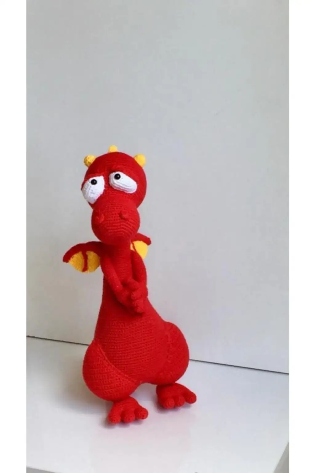 Uyku Arkadaşı Amigurumi El Örgüsü Ejderha; Ürün Boyutu: 35 cm yükseklik x 15 cm en; Ürün %60 Pamuklu,%40 Akrilik İplerle Örülmüştür.; Tüylenme Yapmaz. Her Ürün İtina İle Elde Tek Tek Tığ İle Örülerek Üretilmektedir.; Kullanılan Tüm Malzemeler Hem Sağlıklı Hemde Hijyeniktir.; Makinanızda Hassas Ayarda 30 Derecede Yıkanabilir.;