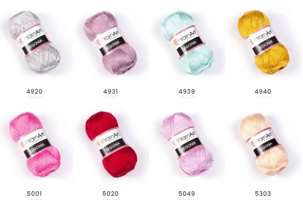 YarnArt Begonia %100 merserize pamuk karışımdan oluşmaktadır. Begonia, punch yapımında da kullanılıyor.Tüylenme yapmaz. Canlı renkleri ile tüm örgü modellerinizde farklı kombinasyonlar yaratabileceğiniz ürün, sıkı örülmesi gereken modellerin şeklini korumasına yardımcı olan sağlam bir yapıyada sahiptir. Ayrıca Ebruli renk seçenekleri için YarnArt Begonia Melange serisini tercih edebilirsiniz.Yarn Art Begonia Melage Seriside yakında stoklarımıza eklenecektir.