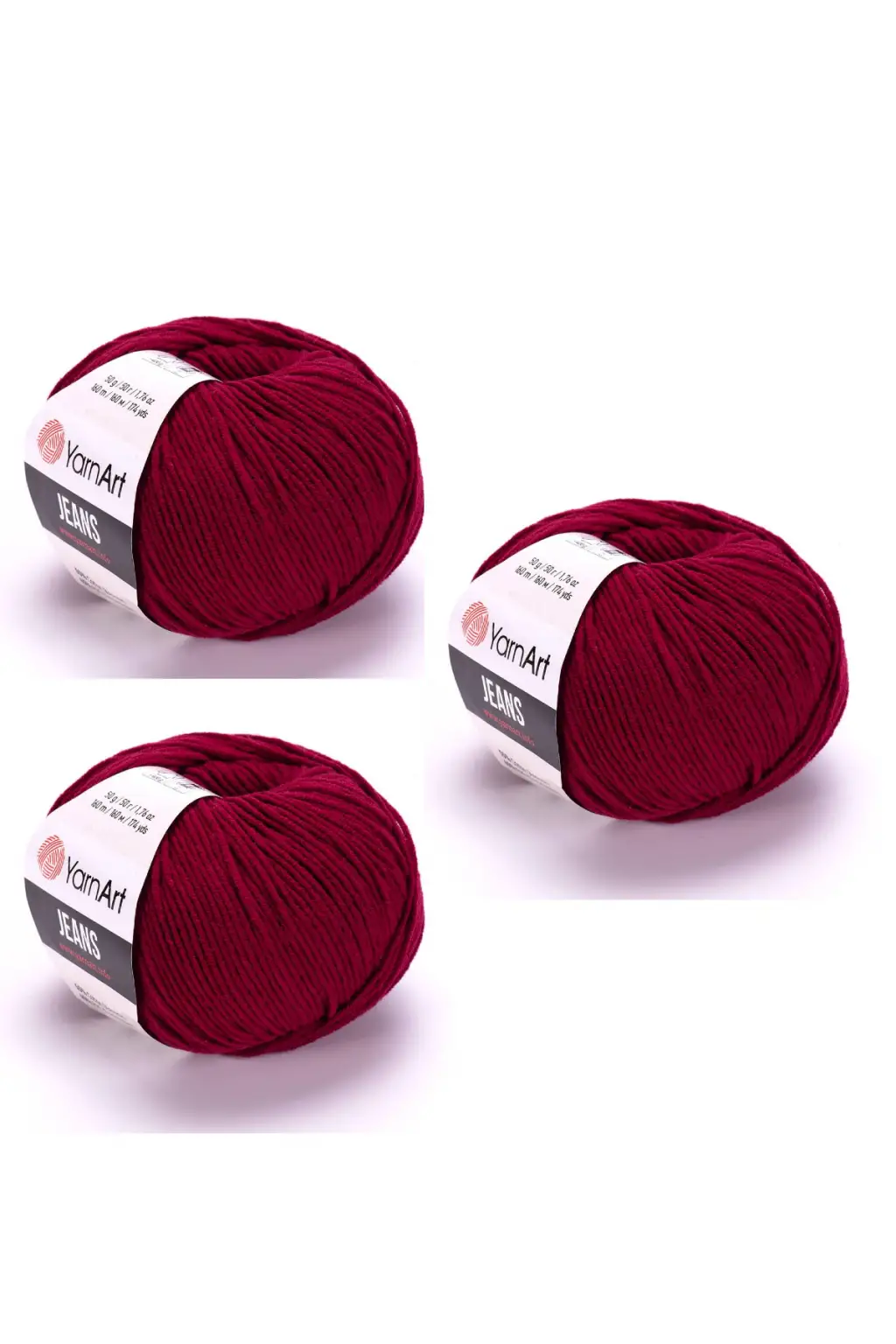 Yarn Art Jeans Amigurumi Örgü İpi 66 Bordo Renk Hırka Örgü İpi Bebek İpi Punch İpi 3'lü Paket