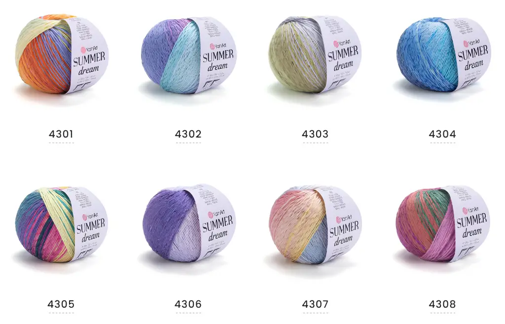 YarnArt Summer Dream, YarnArt kalitesiyle üretilmiş %70 pamuk ve %30 viskoz içerikli, yaz aylarında sıkça tercih edilen ince ve hafif bir el örgü ipliğidir. Parlak ve renk geçişli (ebruli) yapısı ile örgülerinize estetik bir görünüm kazandırır.